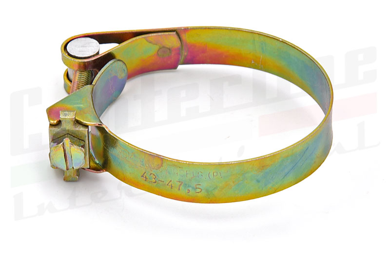 Clamp for for coolant and/or fuel vapor hoses and intake hoses in engine compartment with an outside diameter of 43-47.5mm. Measure before ordering.