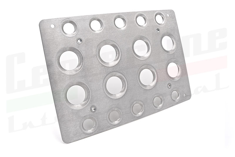 Beautifully made from brushed, Marine-grade Aluminum with dimples for weight reduction and strength. Mount features slots for flexibility in mounting to the bumper, and captive nuts for mounting a license plate.