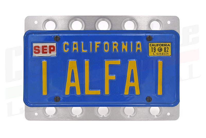 This bespoke aluminum front plate mount allows you to easily mount a standard US license plate to any 101, 105, or 115 series Alfa that originally had the large, square Euro rear plate mount. The mount will also work for US cars wanting to mount the larger Euro rear license plates for show and display purposes. Will also fit a number of other Italian vehicles from the same period.