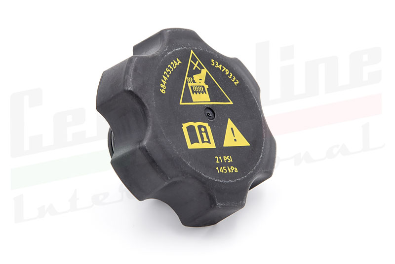 Cap for main coolant reservoir (located in right rear corner of engine bay), serving High Temperature (HT) cooling circuit for radiator and turbocharger(s).