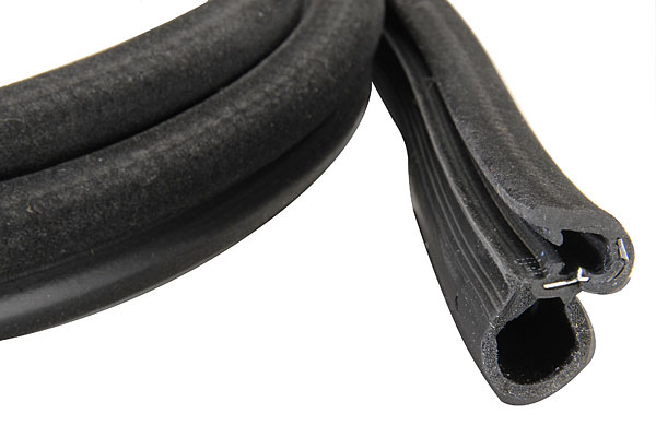 Molded rubber cowl drain hose which drains area under windshield wiper motor at the base of the windshield.