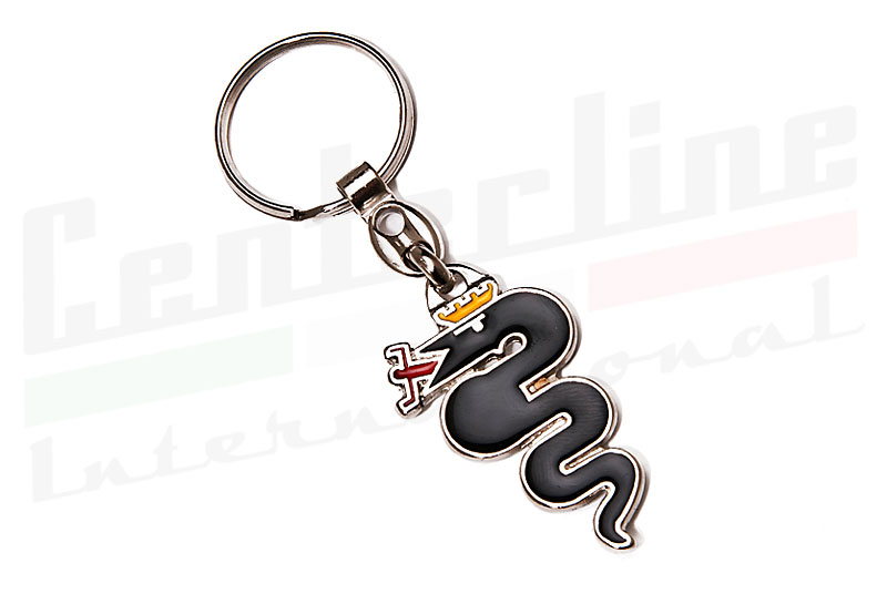 Black enamel keychain with Alfa Romeo's famous serpent.