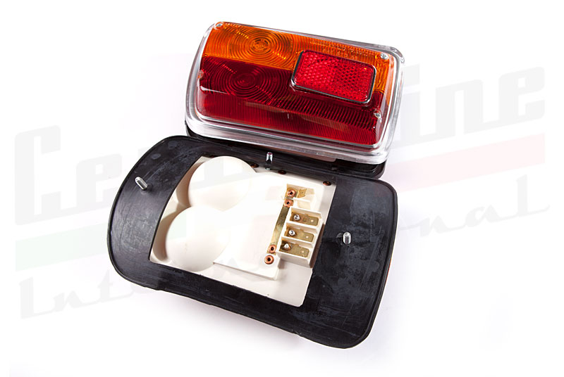 New reproduction tail light housings with lenses for GTV 1965-69. Includes gaskets and electrical connectors on back of housings.
